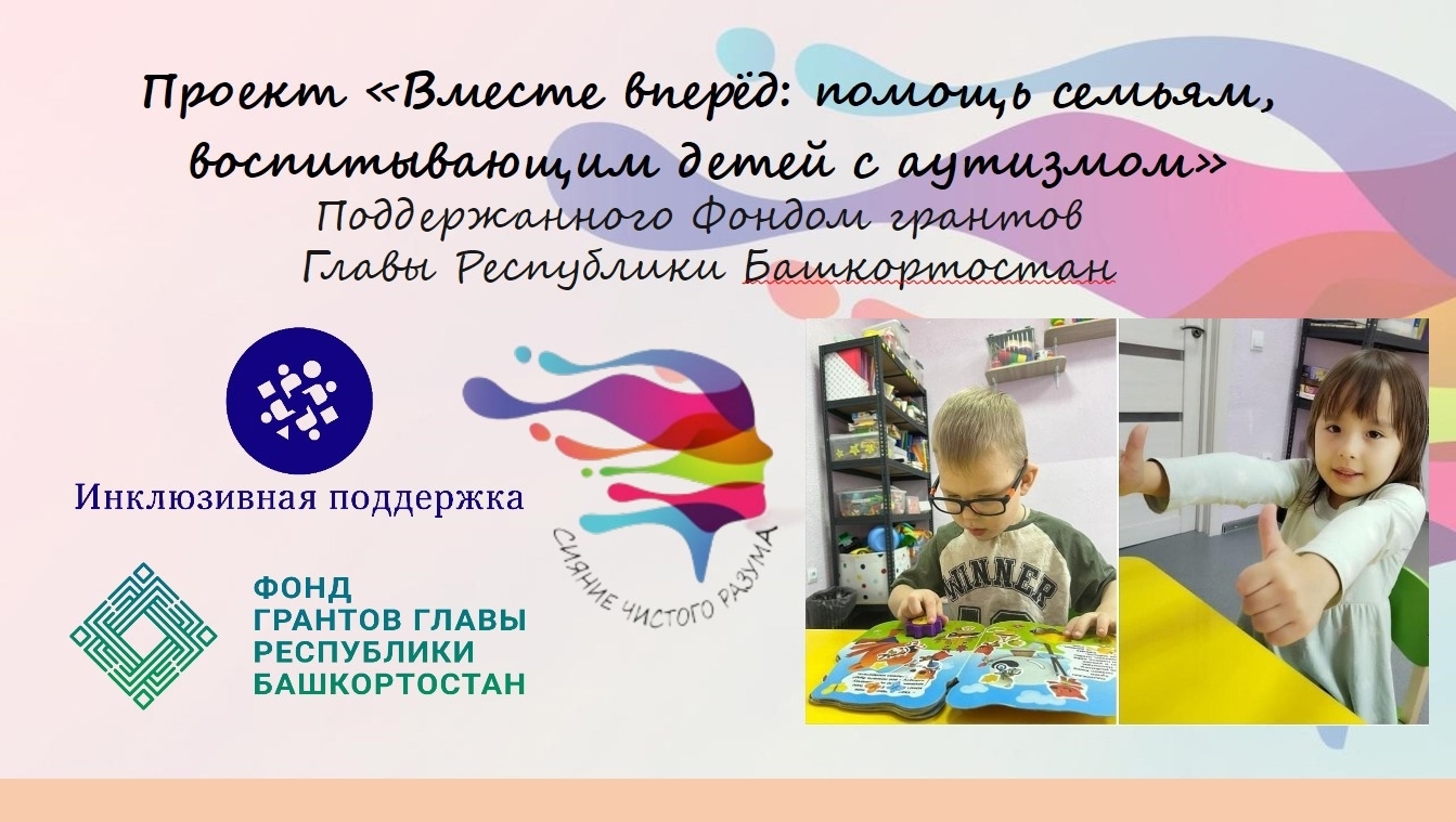 Проект был реализован благодаря АНО Инклюзивная поддержка в партнерстве с "РАССВЕТ" - помощь людям с аутизмом в Уфе и РБ - и АНО "СИЯНИЕ ЧИСТОГО РАЗУМА" на грант Главы Республики Башкортостан при поддержке Фонд грантов Главы Республики Башкортостан