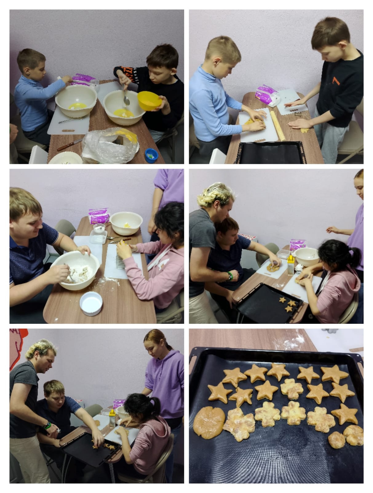 В процессе приготовления печенья, ребята поближе познакомились друг с другом, каждый наблюдал за деятельностью соседа. За кружечкой чая улыбаясь общались.
