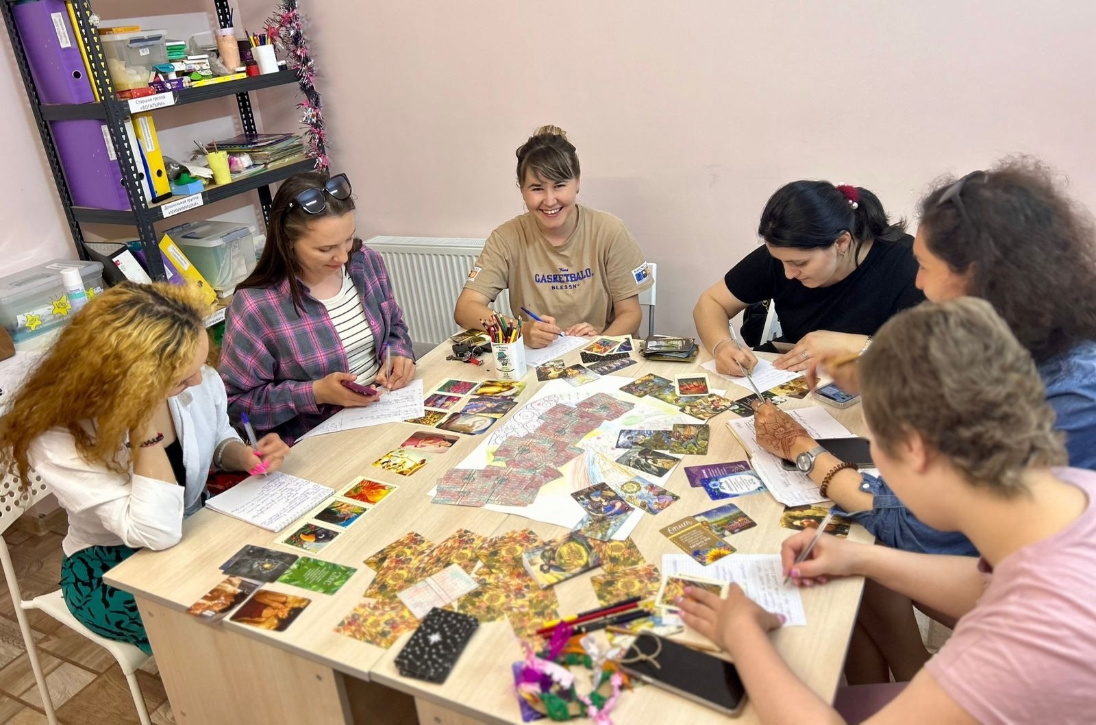 На ресурсной встрече, наши участницы, выполнили совместную арт-терапевтическую технику, которая была направлена на формирование положительных взаимоотношений, на развитие творческого потенциала, на решение определенные задач. В помощь поработали с ассоциативными картами. Сделали письменные практики. Каждая из участниц группы ушла с новым осознанием и решением на лето.